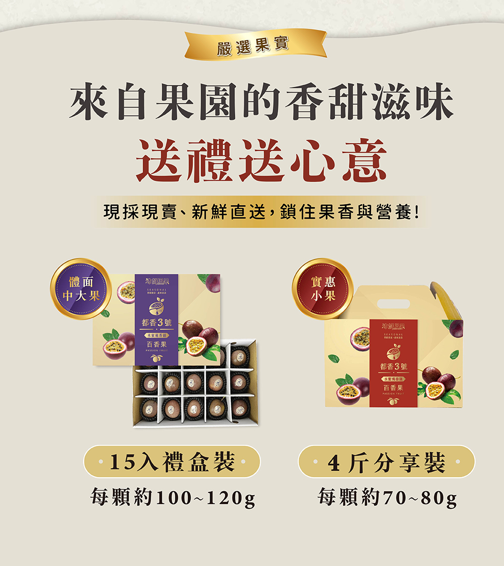 沛鮮王果|都香3號百香果禮盒(15入x2盒)|每顆約100-120克±10%